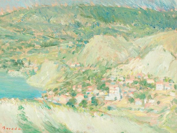 Iosif Iser painted "Dobrujan Landscape" with oil on cardboard to capture the essence of a region marked by its diverse cultural tapestry. Iser, a Romanian-Jewish artist, lived through periods of intense cultural change and political turmoil, including rising antisemitism and the world wars, which influenced his artistic perspective. In this landscape, Iser doesn't just depict a scene; he evokes a sense of place that holds layers of identity. Dobruja, with its mix of ethnicities and religions, embodies a complex intersection of cultures. The subdued colors and the intimate framing of the village suggest a personal connection to the land, as if Iser isn't just observing, but remembering. As Iser once stated, "Art is the supreme means of communication." The artwork invites us to consider how identity is rooted in place, and how artists navigate their sense of self through the landscapes they inhabit. It serves as a reminder of the intricate relationship between personal history, cultural context, and artistic expression.