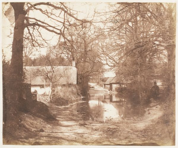 This photograph, "Lock-Keeper's Cottage and Lock Gates," was made by an anonymous photographer, capturing a slice of life likely in England during the height of canal construction. The image presents us with more than just a picturesque scene; it offers a glimpse into the infrastructure that fueled the Industrial Revolution. Canals, like the one depicted here, were vital arteries of commerce, enabling the efficient transport of goods and raw materials across the country. The lock-keeper's cottage, seemingly serene, symbolizes the human labor involved in maintaining this complex system. The photograph quietly acknowledges the unsung workers who kept the economic engines of the nation running. To fully understand the photograph’s significance, one might consult archives, local historical records, and engineering documents of the period. Through such interdisciplinary research, the contingent meanings of this image as both document and aesthetic object comes to life.