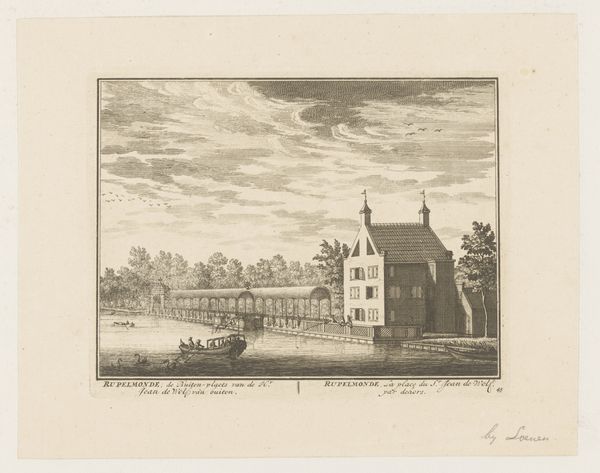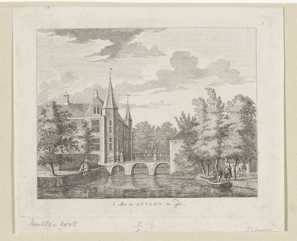 Hendrik Spilman's "Gezicht op Benschop", made in 1744, presents a seemingly tranquil Dutch village scene using etching. The linear precision and detailed rendering of architectural forms create a structured, almost geometric composition. Notice how the steeple and trees punctuate the skyline, acting as vertical markers against the horizontal spread of the village. Light and shadow play across the facades, delineating volumes and adding a sense of depth to the otherwise flat plane. This structured clarity reflects the Enlightenment's emphasis on reason and order. But look closer. Are there hints of an emerging tension between the ideal and the real? The detailed rendering invites scrutiny, yet the scene remains somewhat detached, observed from a distance. The print invites reflection on the relationship between representation and reality. The village is not merely depicted, but constructed.