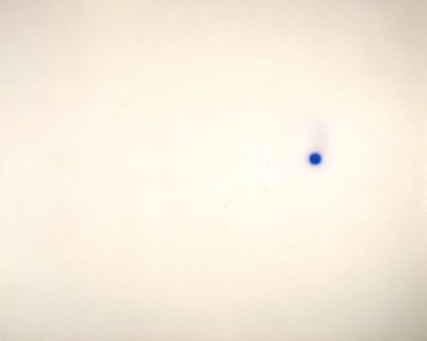 Editor: Here we have Maria Magdalena Campos-Pons' "Elevata, Row 2, column 4" from the Harvard Art Museums. It's mostly pale blue and white, with a single darker blue shape. It's so minimal, almost ethereal. What do you make of it? Curator: The solitary blue form, adrift in that pale expanse, recalls potent symbols of hope or even a seed of potential. Given Campos-Pons' focus on memory and identity, could this evoke a moment or a longing? Editor: A longing? Maybe for home? I see a vast sky, and that blue shape almost looks like a falling tear. Curator: Precisely! Tears are ancient symbols of grief, healing, and even purification. Campos-Pons often explores themes of displacement and resilience. Might this image be a meditation on those concepts? Editor: I never would have considered that. Thinking of it as a symbol, it really opens it up. Curator: Indeed. Art invites us to connect with symbols across time and culture, revealing layers of meaning within the simplest forms. Editor: I’ll definitely look at art differently from now on. Thanks!