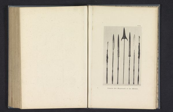 Gustaf Nordenskiöld created this lithograph, "Resten van gereedschappen die zijn gevonden in het Mesa Verde National Park," sometime in the late 19th century. The stark monochrome and the arrangement of the tools create a unique visual experience. The composition is simple: tools are displayed with attention to their shape and form. It's as if Nordenskiöld aimed to dissect the essence of these objects. Each tool is rendered with meticulous lines and shading, revealing a concern for texture and materiality. These linear elements are reminiscent of structuralist thought where individual components contribute to the overall composition. The tools, once functional items within a community, are presented here as artifacts of form and material, prompting contemplation about the relationship between utility and representation. Do these images serve as mere depictions, or do they point to a larger narrative about progress, archaeology and the representation of culture? The formal quality of the lithograph lies in its capacity to isolate and elevate mundane objects, transforming them into potent symbols of cultural inquiry and historical representation.