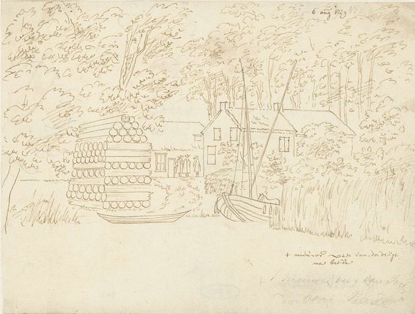 Editor: This is "Het kasteel Bersselaar of Ter Aalst te Oosterhout", a drawing possibly from 1729 by Cornelis Pronk, made with pencil on paper. It's such a delicate rendering; it almost feels like a fleeting memory of a place. What can you tell us about this particular sketch? Curator: Well, Pronk was known for his detailed topographical drawings. This one offers a glimpse into the 18th-century Dutch landscape and the societal values attached to such estates. Editor: Societal values? Curator: Yes. Country estates like this represented wealth and status. By meticulously documenting them, Pronk wasn’t just capturing a scene, he was participating in a cultural practice. His work was supported and even commissioned by wealthy merchants and officials as documentation and promotion of their property. Can you see any other status symbols depicted? Editor: The castle itself, of course, its imposing structure and… well, the sheer amount of surrounding land. Is it odd that the landscape seems a bit...unfinished? Curator: Not necessarily. Sketches like this were often preliminary studies. It would allow the buyer of the artwork to consider its details and approve it before a final artwork. These preliminary renderings helped solidify the social importance of estate ownership within the artistic narrative. It also shows the art market at the time as the wealthy would often ask to see studies like this. Editor: That's fascinating. So this sketch isn't just a record; it’s part of a larger conversation about wealth and power at the time. I never thought of it that way! Curator: Exactly. Think about how images of properties continue to be used today – in real estate, for example. It's all about presenting an ideal, isn't it? This piece is far from simply "pretty," wouldn't you agree? Editor: Definitely, now I see how seemingly simple sketch connects to bigger cultural and political currents. Thank you!