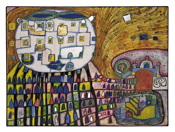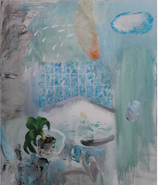 Editor: Here we have Stanley Pinker's "The Patio, Nerja," done with watercolors. I'm struck by the kind of childlike simplicity of the composition. What historical context can you bring to a piece like this? Curator: It’s interesting you use the term childlike; it aligns with "naive art," as labeled in its metadata. Considering Pinker's historical positioning, his adoption of this seemingly unsophisticated style can be read as a reaction against the traditional art establishment. He painted this scene in a time of evolving artistic standards and expanding ideas of what makes an appropriate art subject. Where do you think this fits? Editor: Well, it feels almost like he’s reclaiming the right to paint freely, without the pressures of academic training. It seems so unpretentious. Curator: Exactly! By embracing a style perceived as simple, Pinker may have been subverting expectations and engaging in a silent dialogue with the artistic conventions of his time, making a statement about accessibility and perhaps even social equality in art. It becomes a social act through its deliberate deviation. Do you get the sense it's critical of any cultural narrative of its time? Editor: Possibly of the formal art education establishment of the time, since it's suggesting an alternative approach that anyone can achieve, not just those who went through extensive schooling. And now it’s hanging in a gallery – the ultimate acceptance. Curator: Yes, and the painting itself documents cultural change in how the medium is viewed in a traditional space. So what has this helped you consider? Editor: I think seeing its presence here challenges my presumptions. What once appeared as a naive painting can have social undercurrents and comment on institutions just by breaking with norms. Curator: Precisely! It is how institutions, the gatekeepers of the canon, interact with the visual arts through exhibitions that help reinforce ideas and create shared histories.