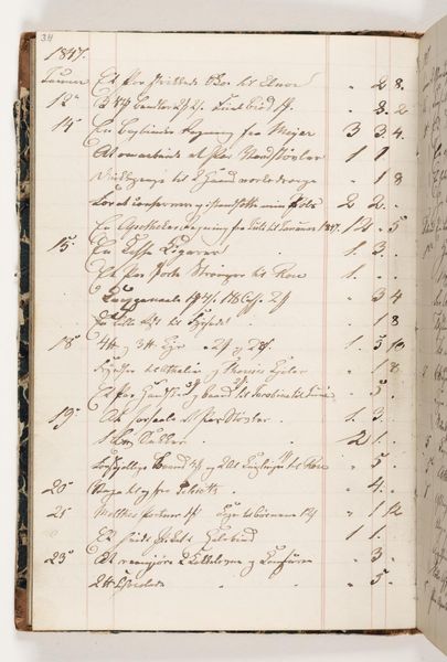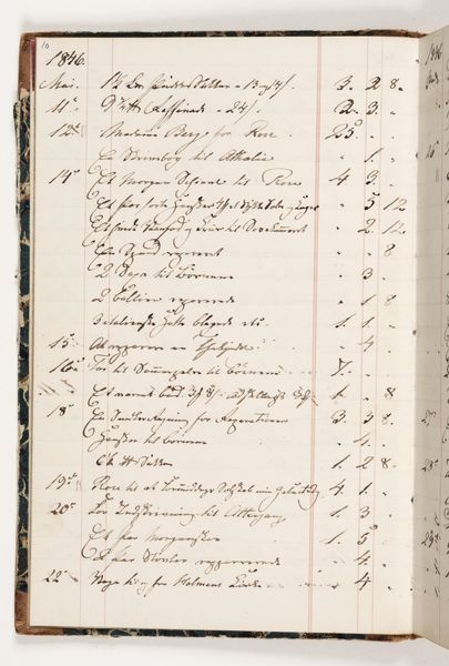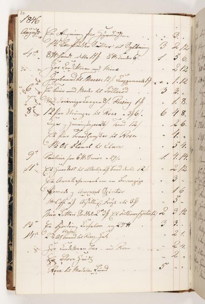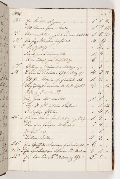 This page from an account book was created in 1846 by Martinus Rørbye, using paper, ink, and a skilled hand. The page is filled with meticulously handwritten entries, recording financial transactions. The dense columns of numbers and carefully inscribed text reveal the importance of record-keeping in 19th-century commerce. The choice of paper, likely handmade, reflects a time before mass production, while the uniformity of the ink suggests careful preparation and consistency. Consider the labor involved in creating this document – the painstaking writing and the physical act of binding the book. This contrasts sharply with today's digital accounting, reminding us of the human effort behind even the most mundane financial records. By focusing on the materials and making of this account book, we gain insight into the social and economic context of its time, challenging any perceived division between art and everyday life.