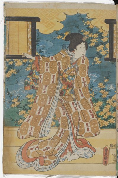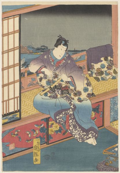 Utagawa Sadamasu II created this woodblock print of an actor at a Chrysanthemum exhibition. During the Edo period, art and theatre became entwined as a form of cultural expression, often challenging social norms. Here, we see a Kabuki actor, a figure who occupied a complicated space in Japanese society. While celebrated for their artistic skill, actors were often viewed as outsiders due to the subversive nature of their performances. Kabuki theatre, with its exaggerated movements and stylized makeup, allowed for the exploration of themes that were otherwise repressed. By embodying different characters, actors could question gender roles and social hierarchies. The Chrysanthemum flower, a symbol of longevity and rejuvenation, serves as an ironic backdrop to the actor’s world. The print reflects the emotional intensity of Kabuki, a space where societal tensions are reflected in artistic form. Sadamasu’s print, with its thoughtful composition and nuanced portrayal, invites us to reflect on the relationship between performance, identity, and society.