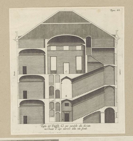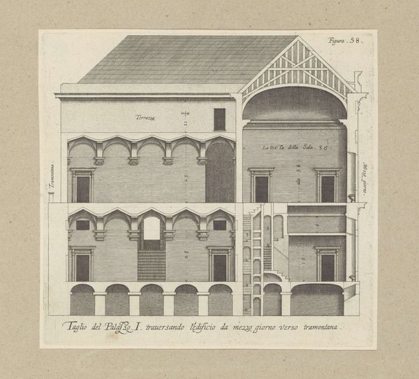 This is Nicolaes Ryckmans' 'Langsdoorsnede van het Palazzo Carrega-Cataldi te Genua', made sometime in the 17th century. Ryckmans meticulously details the architectural structure of the Palazzo, offering us a rare glimpse into the private spaces of the Genoese elite. During this period, the Republic of Genoa was a major maritime and financial power. Palatial architecture was not merely about shelter, but also a potent symbol of wealth, status, and power. What we see here isn't just a building; it’s a statement, a physical manifestation of the socio-economic hierarchies that defined the city. Consider the labour and resources required to construct such a building; it speaks volumes about the networks of power at play. The very stones of this palazzo whisper tales of merchants, bankers, and the complex social structures that upheld their dominance. Ryckmans' drawing invites us to reflect on the stories embedded in the architecture and the lives of those within its walls.