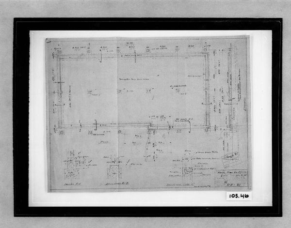Curator: This blueprint from 1945, titled "Office and Factory Buildings, Cali, Colombia," provides insight into architectural planning during a pivotal period. What strikes you about it? Editor: The precision of the lines and the technical detail are impressive. What can we read from this blueprint about the social implications of constructing such a building in Cali at that time? Curator: It reflects a moment of industrial expansion and modernization in Colombia, influenced by global architectural trends. Consider how this building might have shaped labor practices and urban development. Did it contribute to inequality? Who benefited most from this design? Editor: So it's not just a blueprint, but a statement about power and progress. I see it now. Curator: Exactly. It encourages us to consider whose vision was being realized and at whose expense. Thank you.
