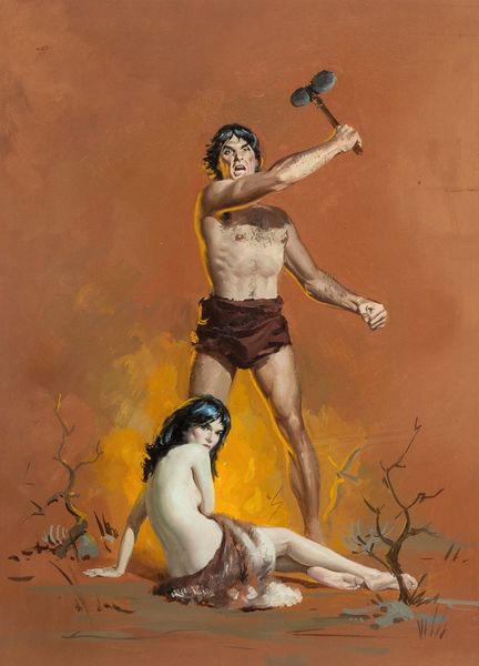 Curator: This intriguing painting is titled "Family Tree" by David Michael Bowers, rendered with oil on canvas. Editor: Striking! It immediately conveys a mood of introspective contemplation, almost mournful. The figures within the stark tree seem suspended between life and…something else. Curator: Indeed. Bowers creates a rather complex allegorical image. Note the recurring figures - seemingly different stages of the same man occupying distinct positions in the tree's branches. Observe, too, the integration of realist and surrealist elements within a composition referencing history painting. Editor: Precisely. I'm fascinated by the tools they wield – the saw, the pruning shears - implements of cultivation and perhaps, severance? This image suggests more than mere biological lineage; there are profound political implications present when regarding the symbols included, and how the subjects interact within the constructed landscape, one of cultivation. Curator: Bowers uses meticulous brushwork, particularly noticeable in the figures' musculature, and careful lighting. The skulls punctuating the branches invite interpretation through visual grammar, pointing toward mortality or consequence perhaps. What meaning do you ascribe from it? Editor: As one moves across cultures, and art history, trees frequently serve as symbols of knowledge, community, even familial relation. By depicting stages of life interspersed among death, this creates a striking tension, drawing awareness toward political cycles of succession. The bare feet seem deliberately placed above a flattened agricultural field - perhaps calling our attention to our very roots? Curator: It is through visual motifs like these that the work resonates across contexts, while posing further interpretative puzzles to resolve. It is well placed as a key element in an introspective series! Editor: Agreed. I am drawn into its allegorical depths and the implications within its intricate architecture. A stark commentary indeed.