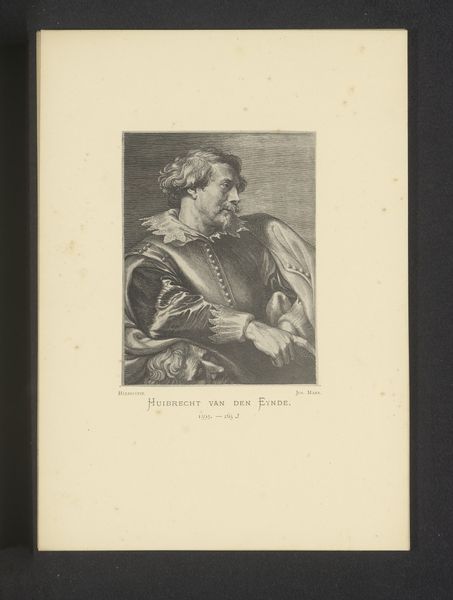 Joseph Maes made this reproduction of Paulus Pontius's engraving of Gerard Seghers in the 19th century. The image uses delicate lines and shading to portray the 17th-century painter. Notice how the composition focuses on Seghers's upper body, draped in fabric that adds a sense of classical grandeur. The use of hatching and cross-hatching creates tonal variations, giving depth and volume to the figure. The subject's gaze is directed off to the side, lending the image a dynamic quality, as if he is caught in a moment of contemplation. Maes's reproduction engages with the semiotic codes of portraiture, where elements like clothing and posture convey status and character. The formal qualities of line and tone work together to create a sense of historical continuity and artistic legacy. Consider how Maes's detailed line work invites us to reflect on the act of artistic reproduction and interpretation across time, destabilizing any fixed meaning. The image remains open to new insights and understandings.