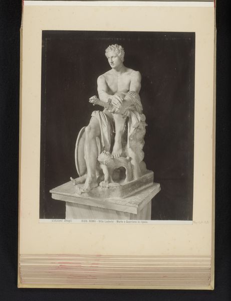 Curator: Looking at this gelatin-silver print from Edizione Brogi, dating to before 1907, we see a photographic reproduction of Michelangelo’s marble sculpture, the Moses, housed in San Pietro in Vincoli. Editor: My immediate reaction is one of sheer power, conveyed so beautifully through the density of the marble itself, the textures the sculptor coaxed from the stone, now captured here by the photographer. Look at the weight of the figure! Curator: Absolutely. The Moses occupies a crucial place in art history, reflecting the patronage system of the Renaissance and its key figures. This was originally commissioned for the tomb of Pope Julius II, and its tumultuous creation reflects the shifting allegiances and ambitions of the time. Consider also its monumental scale, meant to project authority. Editor: Indeed, that tension you describe feels intrinsic to the medium of marble. There is such resistance inherent to the material; stone is slowly coaxed and carved, which creates its own narrative of labor and technical expertise. The photograph then becomes another layer in this process of material transformation. Curator: The politics surrounding the sculpture's creation are just as compelling as the artistic virtuosity on display. The shifting power dynamics in the Church and the role Michelangelo himself played in navigating these treacherous waters adds depth to the piece, resonating even today through pieces like this photo reproduction. Editor: Precisely. Think about how Michelangelo approached the raw block. What tools did he use? What was the quarry like from where the stone was hewn? It grounds the mythology to remember the labor and raw materiality at play. This photograph abstracts us from that reality while paradoxically pointing us to its existence. Curator: It speaks to the evolving function of art – moving beyond simple aesthetic appreciation to becoming active vehicles for engaging with broader socio-political discourses. This sculpture in situ in the basilica would have very likely spoken differently than this image removed. Editor: Considering the ways a sculpture transitions into image through these early photography processes reminds me that these things do not exist in vacuums, either from an aesthetic or manufacturing viewpoint. Everything impacts everything else. Curator: A fruitful discussion indeed, revealing the artwork's impact both within its original socio-political setting and through its photographic retelling in later periods. Editor: An analysis acknowledging how both the artistic creation and photographic translation contribute to its meaning and impact. Thank you.