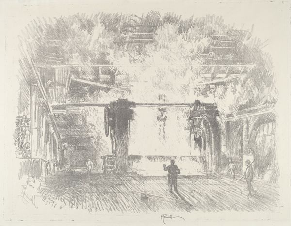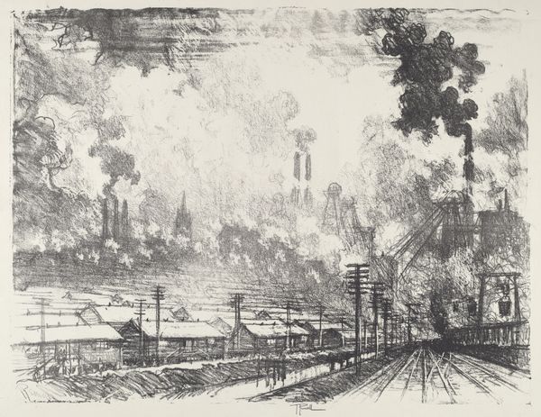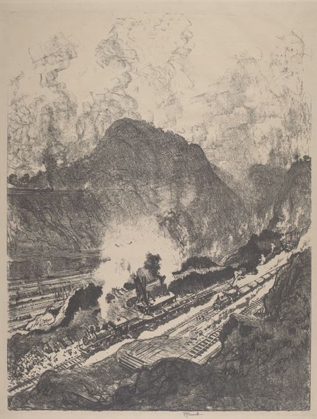 Joseph Pennell’s etching, ‘The Cut, Looking toward Ancon Hill’ captures a scene of immense engineering. The printmaking process itself, using acid to bite lines into a metal plate, echoes the industrial power on display. Pennell wasn't just representing a landscape, but a feat of human labor. Notice how the dense network of railway lines converge, creating a powerful sense of depth, and how the smoke rising from the locomotives blurs the distinction between the natural and the man-made. The scene pulses with the energy of construction, the trains and machinery rendered with intricate detail. Pennell’s composition implicates the viewer in the relentless activity of the canal's creation. He wants us to consider this landscape not as a sublime vista, but as a monument to industrial capability, and the cost of its realization. By focusing on materials, making, and context, we can understand the full meaning of the artwork, bridging the gap between fine art and the realities of labor and progress.