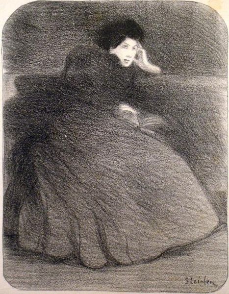 Théophile Alexandre Steinlen, who lived from 1859 to 1923, created this drawing, titled 'Chansons De Femmes', which translates to 'Songs of Women', using what appears to be graphite on paper. Steinlen’s work often captured the lives of ordinary people, particularly women, in the Montmartre district of Paris. His art provides a glimpse into the social and cultural dynamics of his time, especially regarding gender roles and class distinctions. We see a woman, caught in a moment of contemplation, her posture relaxed yet dignified. There is a book on a table next to her, and a vase of flowers, signs of domesticity and intellectual life. But what songs is she singing, silently, to herself? Is she content, or is there a hint of melancholy in her gaze? Steinlen’s image invites us to consider the multifaceted experiences of women in a rapidly changing world, balancing traditional expectations with emerging desires for independence and self-expression.