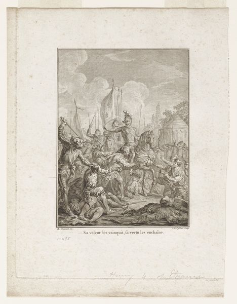 Hendrick Goltzius created this engraving, "Kruisdraging met de Heilige Veronica", on paper around 1617. The artwork embodies the physical and emotional weight of Christ's journey to crucifixion. Goltzius employed the technique of engraving, meticulously incising lines into a metal plate to produce this detailed image. The stark contrast created by the dark lines against the light paper emphasizes the drama of the scene. Engraving was a painstaking process that required technical skill and patience. The deliberate act of carving each line into the plate mirrors the slow, inexorable march towards Christ's fate. In contrast to painting, engraving allowed for the mass production of images. This speaks to the broader social context of the time, where printed images played an increasingly important role in disseminating information and religious ideas. By understanding the materials and processes involved in creating this artwork, we can appreciate the labor and skill that went into its making, and gain a deeper understanding of its cultural significance.