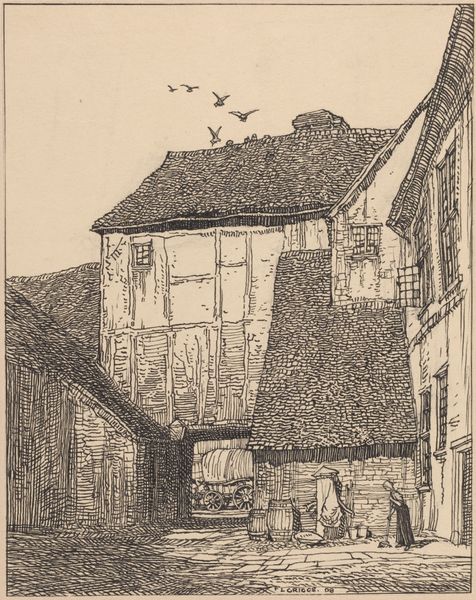 Huib Luns made this work, Waterpoortje naar de Zuiderhaven te Enkhuizen, using pen and ink. Look how Luns applies dense, almost frantic hatching and cross-hatching to build up the tonal range, giving you a real sense of the scene. The texture is so immediate, and the dark areas seem to vibrate against the stark white paper. I’m drawn to the reflections in the water – see how the vertical lines of the buildings dissolve into these chaotic, horizontal strokes. It's like the solid architecture above is just a fleeting, liquid impression below, an ephemeral, unstable shadow of itself. This reminds me of the drawings of Van Gogh, who was, like Luns, also interested in capturing the grittiness of everyday life. The two artists make clear how much meaning can be mined from the simplest of means. It’s a reminder that art isn't about perfect representation; it's about a point of view, an attitude, a feeling.
