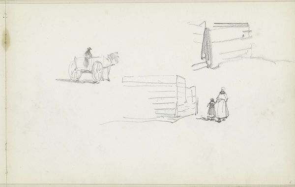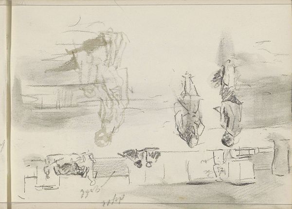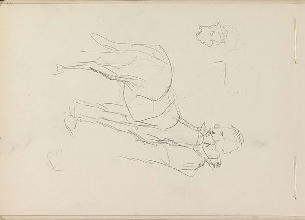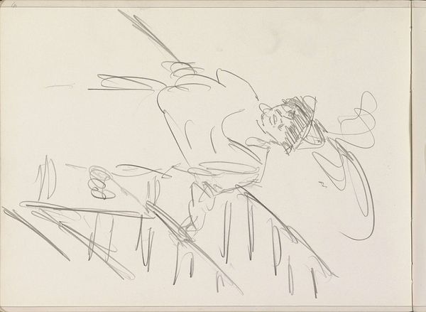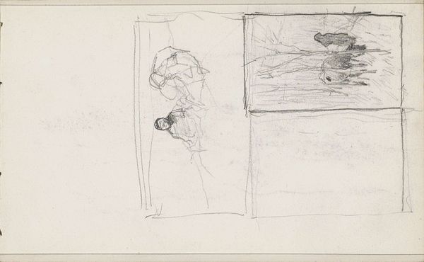 Editor: This is John Singer Sargent's "Sketch of a Studio Interior with Reclining Figure," created with graphite on paper. It feels like a glimpse into the artist's workspace. What stands out to you? Curator: I'm drawn to the evidence of process – the rapid, exploratory lines. Consider the materiality of the graphite itself, a readily available and relatively inexpensive medium. It democratizes the act of creation, doesn’t it? Editor: Definitely. It feels less precious somehow. Curator: Exactly! Sargent, known for society portraits, here reveals the labor and materiality underlying even his most polished works. The sketch shows the means of production stripped bare. What do you make of that? Editor: It makes me appreciate the work that goes into art. Curator: Precisely. It bridges the gap between the finished product and the artist's hand.