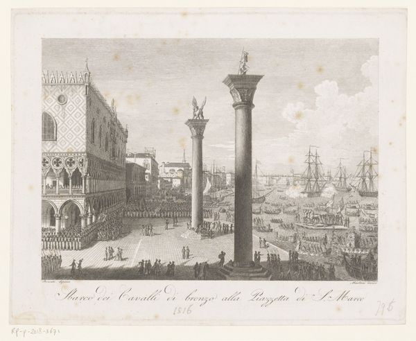 Canaletto captured this lively view of Venice with pen, brown ink, and gray wash. These are traditional drawing materials, but their application here is more like reportage than high art. The relatively quick technique allowed Canaletto to capture a bustling market scene along the Riva degli Schiavoni. Look closely, and you will see vendors and buyers engaged in commerce. The city's architecture looms in the background, rendered with a skillful economy of line. Canaletto has also captured the atmospheric effects of light and shadow, using the gray wash to create a sense of depth and volume. The choice of medium speaks volumes. Unlike oil paint, which was associated with academic painting, pen and ink were more immediate, more portable, and favored by those documenting the everyday. Canaletto’s approach challenges the distinction between fine art and commercial image-making, and reminds us that even the most beautiful cityscapes are also scenes of labor and trade.