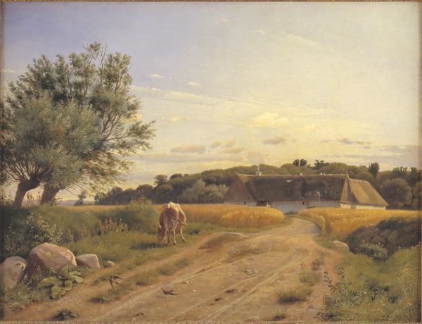 Théodore Rousseau painted "Last Houses of Port-en-Bessin (Calvados)" with oil on canvas. This landscape painting invites us to consider the intimate relationship between people and their environment during a period of significant social change. Rousseau was known for his commitment to depicting the French countryside with an acute sensitivity to the textures and moods of the natural world. Here, he captures the quiet essence of a small village, possibly reflecting on the impact of industrialization and urbanization on rural communities and their traditional ways of life. What does it mean to witness the "last houses" of a place? What histories are embedded within these structures? The painting offers us a moment to reflect on themes of memory, loss, and the preservation of cultural identity in a rapidly changing world.