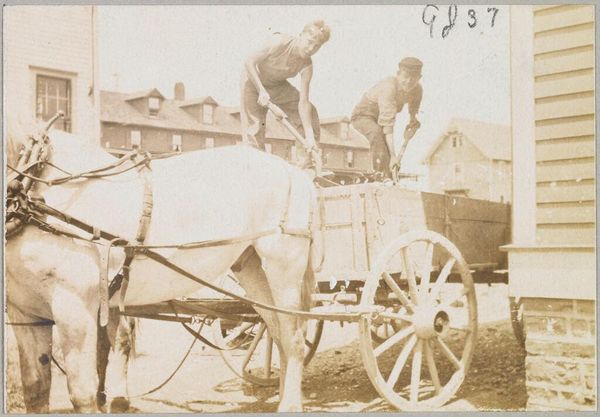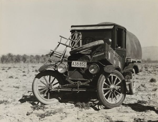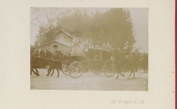 Dirk van der Mark made this photograph, "Automobiel op een strand," sometime between the late 19th and early 20th century. The sepia tone lends a dreamy quality, almost like looking through a faded memory. The photograph’s surface has a beautiful, slightly worn texture, like old paper. The subtle gradations of tone create a soft focus, highlighting the car as it sits proudly on the beach. The way the light catches the details of the vehicle, from the spokes of the wheels to the folds of the roof, speaks to the craftsmanship of both the car and the photographer. Notice how the ground beneath the car is captured with a delicate touch, creating a sense of stillness. This photograph reminds me of the early works of Eugène Atget, who also captured the everyday with a similar sense of quiet observation. It celebrates the beauty found in simple moments, and the stories that can be told through careful attention to detail.