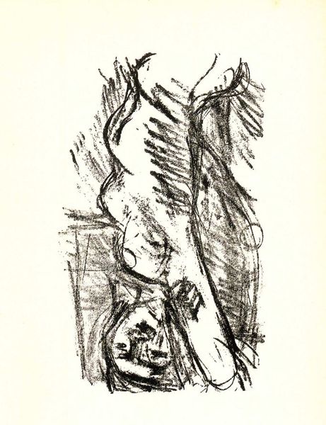 Editor: Here we have Lovis Corinth's etching, "Woman Undressing," created in 1921. The frenetic lines and stark contrast give the piece a really intense, almost anxious mood, don't you think? How do you interpret this work? Curator: Oh, anxiety alright, but it’s married to something… elemental. For me, this isn't just a depiction of undressing. Corinth scratches into our safe little bourgeois idea of nudes. There's a vulnerability, sure, but also a raw, unapologetic strength. Do you see how the figure almost emerges from the darkness? Editor: I do now! The shadows are almost aggressive, consuming the form. Curator: Exactly. And those aggressive marks are what make it. He's wrestling with the image, you see. It’s about the messy, uncomfortable truth of embodiment. Less about perfect beauty and more about the energy it contains! Tell me, what does it feel like to look at? Editor: It feels like witnessing a private moment, yet it's deliberately raw, even confrontational. The expressionism feels like an exposed nerve. Curator: Precisely! And I think Corinth wouldn't want it any other way. He pulls away the veil to make us confront the honest… fleshy realities we would often try to make more digestible. What do you take away from it? Editor: I will not only read the artworks, I want to feel the raw intent that fuels them! Curator: Ah, my budding Padawan! That's where the true magic resides.