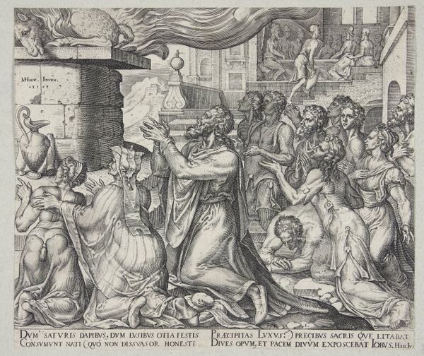 This print, titled "The Calumny of Apelles," presents a dense narrative scene filled with symbolic figures. On the left, we see Ignorance and Suspicion, whispering into the ear of King Midas, who sits in judgment. Calumny, or slander, drags a young man by the hair towards the king, accompanied by Deceit and Fraud. Behind them follows Repentance, looking back at Truth who is approaching. This story echoes through time. The motif of unjust accusation and the struggle for truth appears in numerous guises across cultures, from ancient Greek tragedies to Renaissance allegories. Consider the figure of Calumny herself – her frenzied energy and destructive force resemble the Furies of classical mythology, embodiments of vengeance and psychological torment. The emotional intensity conveyed through such figures reflects a deep-seated human fear of injustice and the chaotic power of rumor, engaging viewers on a subconscious level. This allegory of Apelles, passed down through history, reminds us of the cyclical nature of human experience, where timeless themes resurface, evolve, and find new expression across generations.