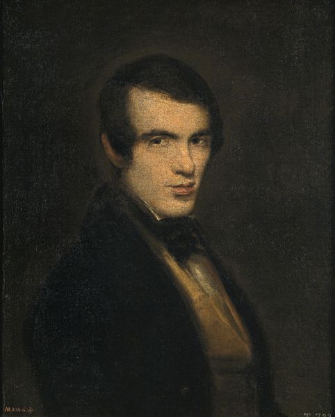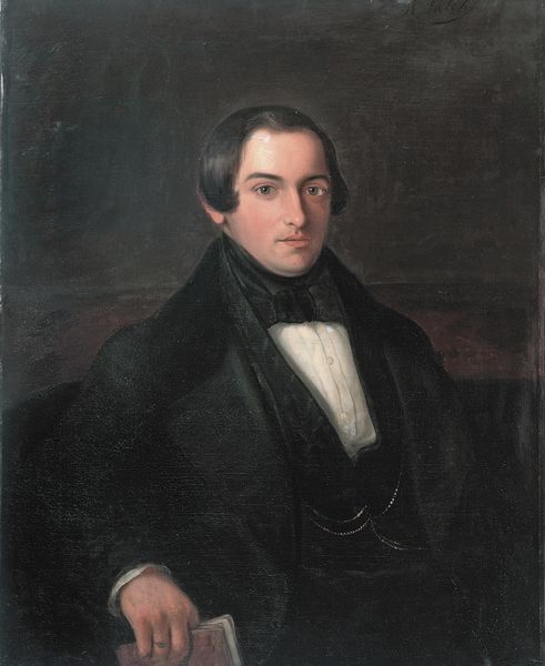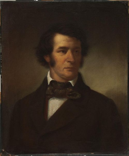 Editor: Here we have Wellman Morrison's portrait of Charles Sumner, a stately man rendered in muted tones. It feels very formal, almost severe. What do you make of it? Curator: It makes me think of a carefully constructed public image. The subdued palette, the deliberate pose, it all speaks to a desire for respectability. Almost like a mask he wore. Do you get that sense? Editor: I do, now that you mention it. The somber colors add to that feeling. So, the portrait tells us more than just what he looked like? Curator: Absolutely! It whispers secrets about the man, the artist, and the society that shaped them both. It's like a visual poem. Editor: I’ll never look at portraits the same way again!