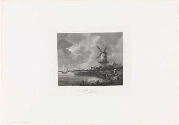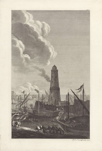 Paulus Lauters created this print titled *Nederlandse troepen verlaten Oostende, 1830*. It portrays the departure of Dutch troops from Ostend during the Belgian Revolution. The print captures a pivotal moment of shifting national identities and sovereignty. As the Dutch troops withdraw, the local population witnesses this transition. You can see some of these people on the coast road, alongside their horse-drawn carts. This detail underscores how ordinary lives are affected by geopolitical events. The lighthouse in the center symbolizes a beacon of change. The work reflects a sense of uncertainty, as an old order recedes and a new one emerges. What does it mean to witness the literal drawing of new borders? It's a physical change, but also a deeply emotional one for all involved. The print serves as a reminder of the human stories that are always embedded in the grand narratives of history.