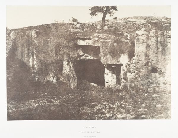 Auguste Salzmann captured this albumen print, "Jérusalem, Vallée de Josaphat, Grottes sépulcrales, 2", during a mid-nineteenth century expedition to Jerusalem. Salzmann was commissioned to photograph sites of Biblical significance, which were then presented as objective records. His work, however, also became entangled with European colonial interests. While Salzmann's images promoted a sense of scientific accuracy, they also romanticized the 'Orient', reinforcing Western perceptions and power dynamics. This photograph invites us to reflect on the act of seeing and documenting. What stories do we tell when we frame a culture through a lens? What perspectives remain unseen? The sepulchral caves are rendered with a stark, ghostly presence, evoking a sense of timelessness but also absence. Salzmann invites a dialogue between historical record and the complex layers of cultural interpretation.