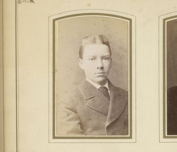 This is a portrait of a man with a beard by Hendrik Johannes Craije Azn. The photograph is contained within an oval frame, a shape which softens the formality of the subject. The sepia tone across the print flattens the depth of field, compressing the man's features into a singular plane. This gives the portrait a sense of immediacy, as though the subject is emerging from the very surface of the image. Consider how the formal constraints of the portrait—the pose, the framing—intersect with broader semiotic systems of representation. The beard, the jacket, the serious expression, all coalesce to project an image of bourgeois respectability. Yet, the subtle variations within these codes—the slight asymmetry of the beard, the direct gaze—hint at a more nuanced identity beyond the conventions of the time. These visual cues, while subtle, disrupt any fixed interpretation, inviting us to consider the interplay between social representation and individual expression.