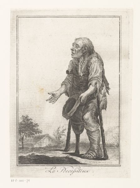 Romeyn de Hooghe created this print, "Figures à la mode, no. 7: Man in rhingrave," to capture the styles of dress during the Dutch Golden Age. The flamboyant attire, particularly the rhingrave breeches, signals wealth and status at a time when fashion was a crucial marker of identity and social position. The setting in which this man is placed, surrounded by onlookers, emphasizes the performative nature of fashion and the social gaze that comes with it. This print invites us to consider the culture of display and the ways in which individuals used clothing to negotiate their place in society. De Hooghe’s precise rendering of the fabrics and accessories is not just documentation; it is also commentary on the excesses of fashion and its role in defining masculine identity. The image evokes questions about the relationship between visibility, power, and the construction of self in the context of 17th-century Dutch society.