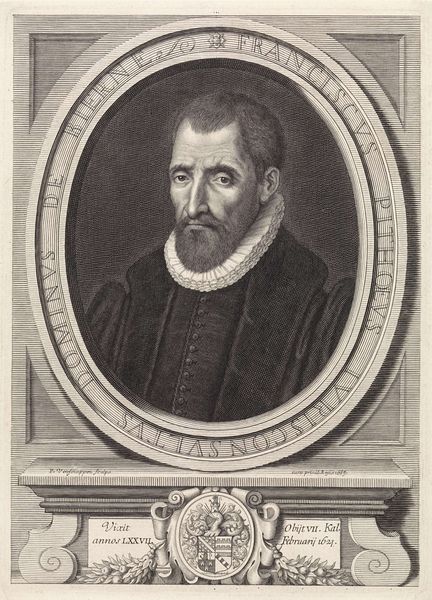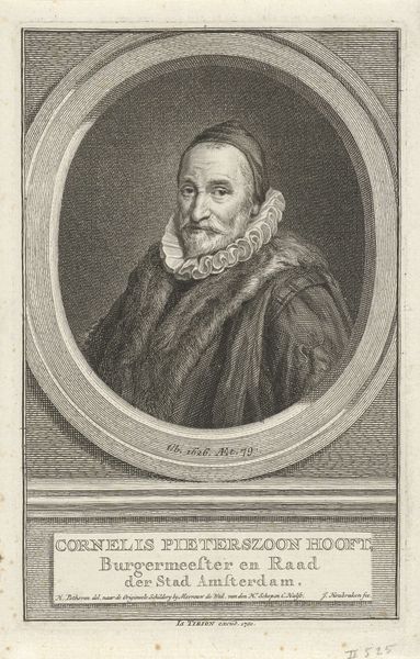 Editor: Here we have François Harrewijn's "Portret van le seigneur Agnoste," an engraving from around 1710 to 1764. It’s quite formal and has a kind of detached feeling, doesn't it? What do you see in this portrait? Curator: Well, this print speaks volumes about the public role of imagery in the 18th century. Notice how the subject, presumably someone of significance, is presented within an elaborate frame, complete with inscription. Consider this image in the context of the burgeoning print culture. What role do you think prints like this played in shaping public opinion? Editor: I suppose they served to immortalize people of status and circulate their image, solidifying their reputation, perhaps even crafting it? The inscription hints at a "Satyre," suggesting this man was an author or someone known for their wit. Is there anything known about the networks through which these images circulated? Curator: Absolutely. Prints like these were often commissioned by the sitter themselves, or by their patrons. They circulated within specific networks – intellectual circles, aristocratic society, and even emerging middle-class spaces. The choice of engraving, a reproducible medium, signals an intention for broad dissemination and, perhaps, a bid for cultural capital. Did everyone have equal access to imagery at that time, though? Editor: Good point. I’d imagine the ability to own or even view such prints was limited by social standing and literacy. So, its effect would have been felt more strongly among certain groups. I am surprised though at the reference to satire in such an image that is otherwise formal in style. Curator: Precisely! And there's the paradox: to be recognized for satire, which inherently challenges norms, still required navigating the established channels of image-making and self-representation. Reflecting on this now, the "detached feeling" you initially noted might also suggest an ironic awareness, a knowing wink embedded within the formal portrait. Editor: I hadn’t considered that. This print reveals so much more than just a likeness; it reflects the intricate relationship between art, power, and public perception in that era. Curator: Indeed. It makes you appreciate the layered meanings within even what seems a straightforward portrait.