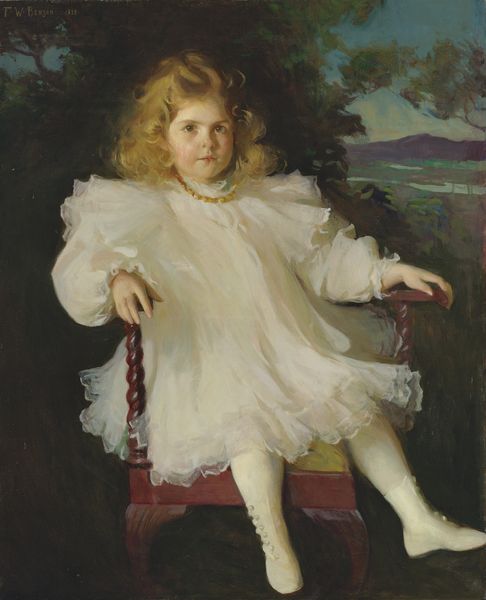 Tom Roberts created this artwork, Lily Sterling, using oil on canvas. The painting is dominated by a pale palette, where whites and creams blend softly with a muted green background to create an atmosphere of tender, youthful innocence. Roberts masterfully uses light and shadow to define form. Notice how gentle strokes of color model the girl's face and clothing. The large hat frames her features, drawing our attention to her eyes. Roberts uses a limited range of tones to create a sense of unity throughout the painting. The textured brushwork adds depth and vitality to the seemingly simple composition. The artist’s formal decisions reflect the broader artistic interests of his time. By focusing on the subtle interplay of light and color, Roberts moves beyond the simple representation of a young girl to explore the very essence of visual perception. This focus reflects the Impressionist movement's concern with the fleeting nature of light and the subjective experience of seeing, which challenges the values of academic painting.