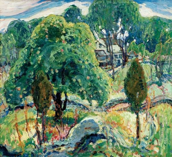 Konstantin Gorbatov painted this landscape with church using oil paint on canvas. Note how he's built up the paint into thick, textured strokes, especially in the foreground. The brushwork is almost sculptural, giving a real sense of the physical effort involved. Looking closely, you can see how he's used different brushstrokes to create different effects. The trees are rendered with short, choppy strokes, while the sky is smoother and more blended. The artist is using a well-worn technique that has been used for centuries, particularly by landscape artists of the impressionist era. This process has imbued the artwork with a social and cultural significance tied to landscape art. By emphasizing the materiality of the paint itself, Gorbatov draws our attention to the act of painting. It challenges traditional distinctions between fine art and craft. In this painting, the work that went into the production process is evident and celebrated.