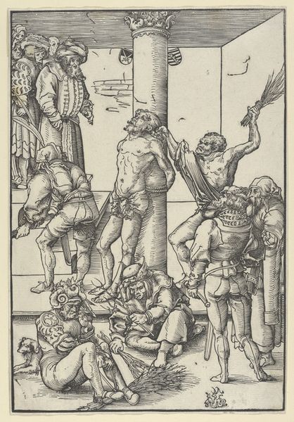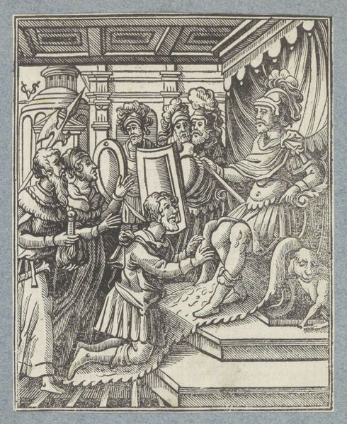 Christoffel van Sichem II created this woodcut depicting "The Judgement of Solomon." At first glance, the composition is dominated by strong vertical lines and a dramatic contrast between light and shadow. Look at how the dense, parallel lines create depth and texture, drawing our eyes to the central figures. The artist uses these visual elements to explore themes of power, justice, and deception. Consider how the sharp lines and stark contrasts emphasize the tension of the moment, underscoring the precariousness of life and the gravity of Solomon's judgement. The intricate details and the dynamic arrangement of figures, destabilize established meanings, inviting viewers to question the nature of truth and the complexities of human relationships. The high contrast of the woodcut serves not only an aesthetic purpose, but also as a commentary on the clarity and opacity of justice, an invitation to reflect on how we interpret signs and make judgements in our own lives.
