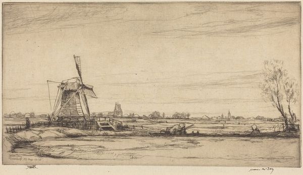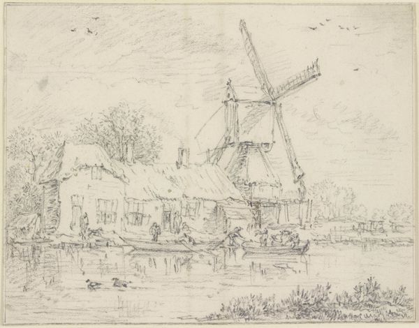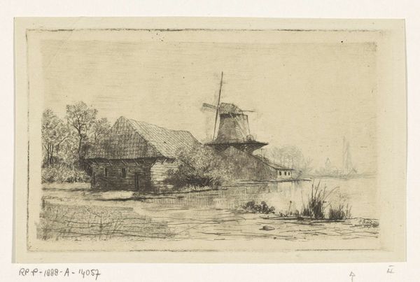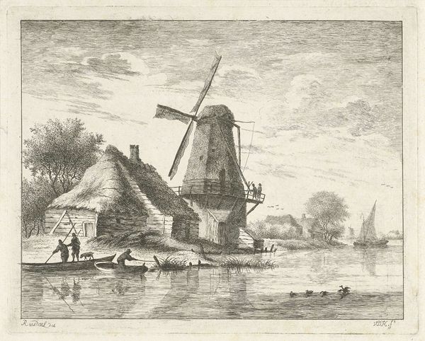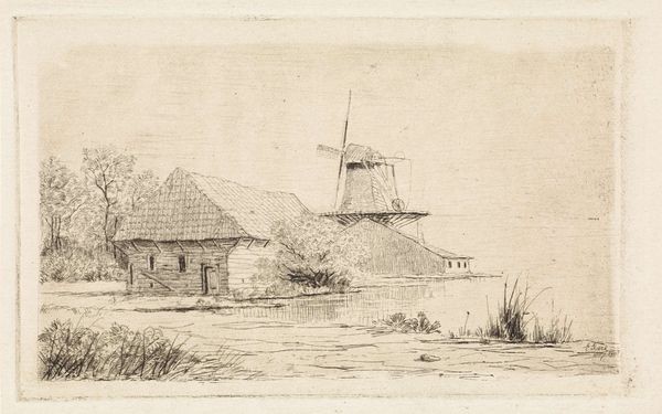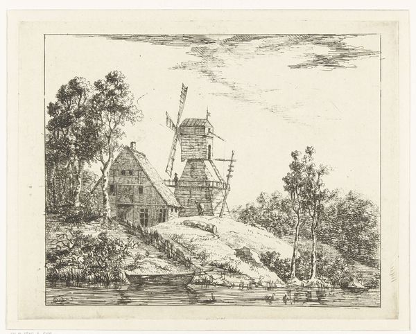 Elias Stark created this print, “Schuur en molen aan het water” showing a barn and mill by the water. The etching gives us a glimpse into the Netherlands and its cultural identity, where windmills were not just functional structures but symbols of ingenuity and resilience. Consider how Stark’s delicate lines capture both the industrial presence of the mill and the serene simplicity of rural life. These mills often represented a community's livelihood, intrinsically linked to the labor and lives of the working class. The choice to depict such a commonplace scene elevates the everyday. It asks us to think about how our identities are tied to our environment. The emotional resonance of this image lies in its quiet celebration of the ordinary, and the dignity of those who lived and worked in these landscapes.