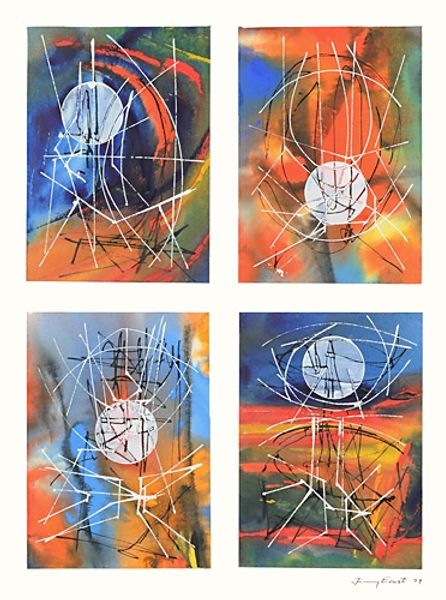 Nam June Paik created this set of four TV screens, all showing flowers, in a way that really embraces the fluidity of images. The colours are intense, almost neon – reds, yellows, and greens that pop right out at you. It’s like he’s taken painting and exploded it into the electronic age. Look at the way the images pulse and vibrate; it’s all about the surface, the glow, the sheer physicality of the screen. The pixelated quality almost makes it seem like an abstract painting! That bottom right image really strikes me. The colours are so saturated, the forms almost melt into each other. It’s controlled, but on the edge of chaos. I can't help but think of the way David Hockney used color, that same kind of sun-drenched, optimistic vibe. But Paik’s version is all electricity and light. For me, these pieces are all about the joy of seeing, and the sheer possibility of what art can be.