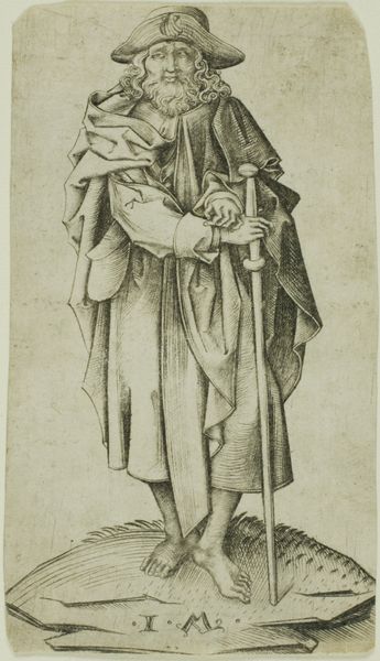 Israhel van Meckenem made this image of Saint Cornelius using an engraving technique. Lines were cut into a metal plate, ink was applied, and then the image transferred to paper. What I find fascinating is how this print bridges the gap between high art and skilled craft. Van Meckenem wasn't just an artist; he was a master craftsman, meticulously carving lines into metal to create a reproducible image. Look closely, and you'll notice how the varying densities of lines create shading and volume, giving the figure a remarkable sense of depth. Engraving, like many crafts, involves intense labor and specialized knowledge. Van Meckenem would have spent years honing his skills, and the resulting print was a valuable commodity in its time. It's a testament to the fusion of artistry and technical skill, blurring the lines between fine art and the world of skilled trades.