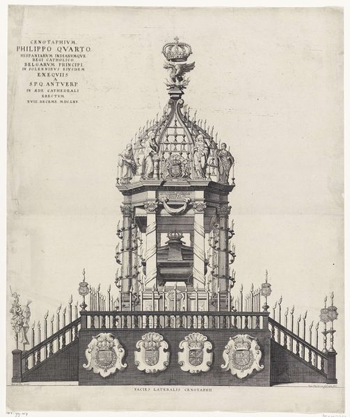 Curator: The imposing structure captured here is titled "Stadsgezicht van Londen," dating from somewhere around 1860 to 1915. The medium is listed as a gelatin silver print, a photographic process that really defined the look of late 19th and early 20th-century imagery. Editor: Monumental, isn't it? It strikes me as a statement about power and legacy, something striving for timelessness through sheer scale and ornate detail. All those steps... and the figures and the spire itself, they give off the clear sense of historical import. Curator: Absolutely, and let's think about that silver gelatin process itself. Consider the labour involved in creating this kind of print. It’s not just snapping a picture, it’s the coating, the developing, the fixing... the industrial processes become deeply intertwined with capturing and disseminating this grand image. How accessible would this kind of monumentality become with mass reproduced prints of the location, of London itself? Editor: You're right, and beyond the process, the photographic image transforms how we remember public art and its intention. Note the Christian cross atop the spire, drawing on the visual vocabulary of cathedrals while celebrating worldly, imperial authority. That convergence of the sacred and secular is powerful stuff. It recalls centuries of tradition and perhaps re-iterates the conflation in British power. Curator: And I would agree that photography as a medium lends itself to memorialization and legacy creation, especially as photography becomes associated with middle-class domestic practice of holding memories through portraits or the new accessibility of urban cityscapes in print. In that regard, it mirrors what this sculpture itself communicates materially: empire, permanence and order for an expanding audience, or at least one afforded a photograph in this era. Editor: Precisely, it is like we have a visual echo from photograph to subject. It underscores how public memory and the memorialisation is also bound to visual language, and in this case the silver gelatin print adds this poignant, historical layer. A powerful fusion of symbolism and sentiment that resonates across time. Curator: So, the way the photographic print makes the material and the labour visible also brings the ideological workings of imperial power closer into focus. I didn't expect this journey into production, to offer new perspectives on iconography! Editor: Likewise! This picture and print really opens up interesting avenues for appreciating the intricate tapestry of the artwork itself, the subject of empire that produced both photograph and public monuments.