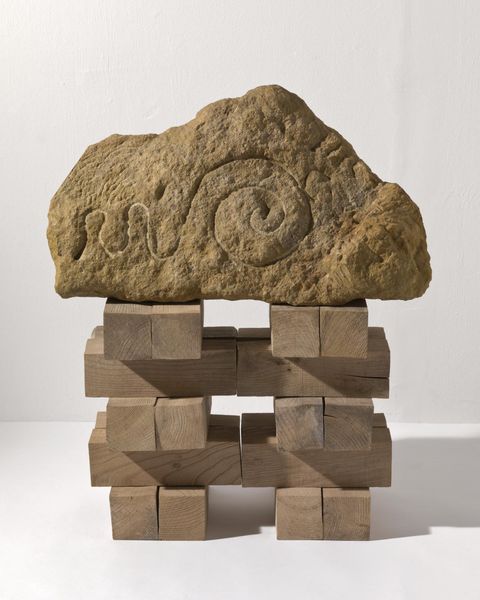 Editor: This is Peter Fischli's *Untitled (Small Root)*. It looks like a charred chunk of wood, almost fossilized, sitting on this stark white pedestal. What symbols do you find in its stark presentation? Curator: The black root against the white cube evokes a potent contrast: nature versus culture. The charred texture may symbolize destruction, but also preservation, echoing ancient rituals around fire and transformation. Do you see how it recontextualizes natural objects within a gallery setting, imbuing them with new meaning? Editor: Yes, it's like a relic, isn’t it? Presenting the root as an artifact. Curator: Precisely! It compels us to consider the shifting value and symbolic weight we assign to the natural world. Editor: I never thought of it that way. It seems so simple at first glance, but it’s really complex.