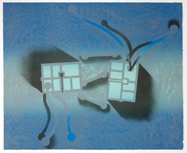 Editor: Here we have an untitled mixed-media print by Jasper Johns, created in 2000. It’s got this rough, almost unfinished feel with the visible "working proof" inscription and scribbled lines. The two silhouetted figures feel a little ambiguous… almost like a Rorschach test. What do you make of it? Curator: Well, considering Johns’ engagement with the everyday object, the print gains meaning. Johns, who helped challenge traditional notions of what art could be, continued to dismantle conventional structures in this print. By exposing his process so bare—we see his notes, his sketches, the unfinished state. He questions the art object itself, challenging its presumed authority. Don't you find this direct access to artistic development rather powerful, rather unconventional? Editor: Absolutely. It’s like he's deliberately showing us the backstage, the messy reality of artmaking, rather than presenting some polished facade. So how does the historical context play in this artwork? Curator: Think about Pop Art's rebellious spirit against established art hierarchies, Johns took this idea further. Look at his repetition and use of common motifs like the numerals, alphabets. This suggests mass culture and questions uniqueness within artistic practice. By including ‘working proof’, Johns takes these pop ideologies and incorporates them into his final production. Are you not wondering about Johns intentions behind using an unconventional methodology? Editor: Yes! He’s really making us rethink the value we place on a finished piece. It also emphasizes the democratic quality to his artistic process, because it invites participation from his viewers. What does his experimentation suggest about art institution during that time period? Curator: The late 20th century witnessed growing institutional critique, museums, galleries became scrutinised, raising questions of cultural authority. So, this 'Untitled' print stands as a statement against those very institutions. In a way, it is a radical deconstruction of everything ‘art’ stood for. Editor: This has been a fascinating perspective. Now I appreciate that "unfinished" quality so much more. Curator: I'm glad this changed your perspective! Hopefully now you and many others will see this working proof with fresh eyes, appreciating art is not about appreciating ‘the outcome,’ but admiring the intention behind ‘the journey’.