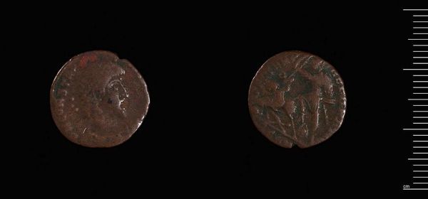 Curator: This is a coin of Carrhae under Caracalla, currently held at the Harvard Art Museums. It's a fascinating little window into the ancient world. Editor: It's wonderfully weathered, isn't it? It feels like it has its own story to tell. The color is quite dark. Curator: Absolutely. As a piece of propaganda, a coin could travel throughout the vast Roman empire. Caracalla put his image on everything. Editor: Yes, I see his profile on one side and the moon and stars on the other. It feels almost dreamlike given the passage of time. Curator: The imagery links Caracalla to the cosmos, aligning him with the divine. The coins represent the political power he wanted to exert. Editor: It is a humble object, but loaded with ambition, isn't it? To think how many hands this passed through. Curator: Exactly. It offers such a palpable connection to a distant era. Editor: Truly. And it sparks the imagination, doesn’t it? It allows you to dream a little.
