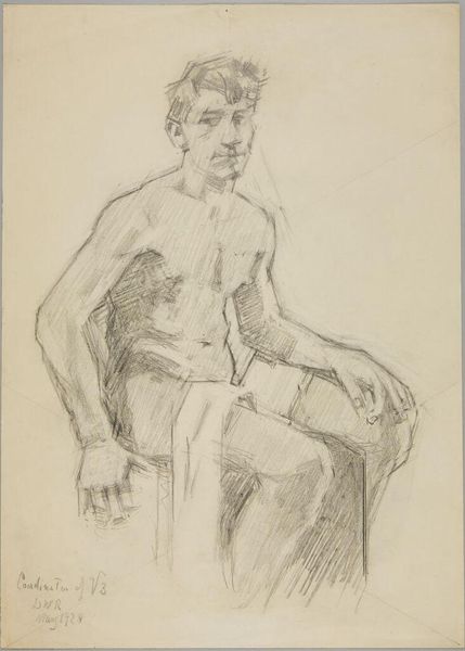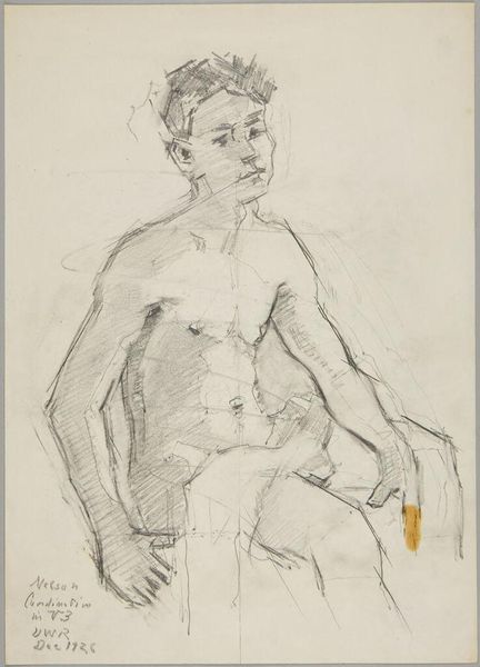 Editor: This is Denman Waldo Ross's "Seated Sketch of Charlie Parker" from 1933, a small pencil drawing at the Harvard Art Museums. It feels very intimate, almost like a private glimpse. What strikes you about this piece? Curator: I'm intrigued by how this sketch participates in the academic tradition of life drawing, a common practice for artistic training. Do you think the artist’s focus on the sitter’s form overshadows questions of representation and power during that period? Editor: That's a great point! I was so focused on the sketch's immediacy, I missed the broader social context. Curator: Exactly. Consider how artistic institutions used life drawing to reinforce certain ideals. This work provides an interesting lens through which we can examine those historical power dynamics. Editor: I’ll definitely look at life drawings differently now. Thanks!