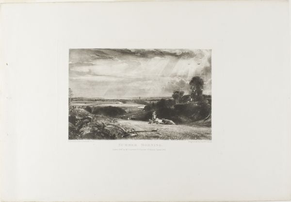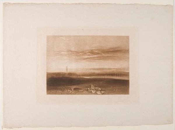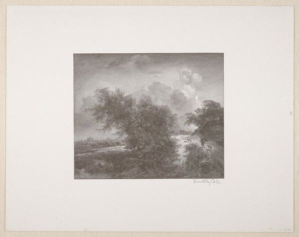 Editor: Alexandre Calame's "Landscape Number 35" evokes a quiet, almost melancholic mood with its monochromatic palette and dramatic sky. What do you see in this piece? Curator: It whispers to me of the sublime, that 19th-century fascination with nature's awesome power. Notice how the light catches those distant rooftops, a tiny beacon against the vastness. Editor: The contrast is striking. Does this highlight a tension between humanity and nature? Curator: Precisely. Calame invites us to ponder our place in the grand scheme, perhaps even suggesting our relative insignificance, yet celebrating our resilience. Editor: I'm left with a greater appreciation for Romanticism's complexity and Calame's technical mastery. Curator: Indeed, a thoughtful piece that resonates even now, prompting introspection and wonder.