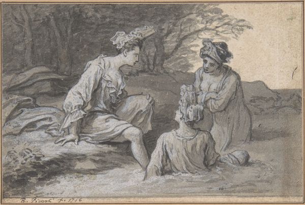 Editor: We're looking at "Abraham Dismissing Hagar and Ishmael" by Barent Fabritius, painted in 1658. It’s an oil painting, and I'm struck by how heavy the mood feels, despite the beautiful landscape in the background. It feels like the artist knew how difficult departures are. What resonates with you most about this painting? Curator: The ache in that moment, captured in the slump of Hagar's shoulders, is palpable. You know, it’s funny, Biblical scenes were often about grand gestures of faith, but here, Fabritius gives us a private sorrow. It’s less about the divine command and more about the very human cost. Do you feel the composition reinforces that intimate, almost claustrophobic, feeling? Editor: Yes, definitely. The figures are so close together, almost pressed against the viewer, like we're intruding on something deeply personal. And Abraham’s gesture, the way he places his hand… it feels less like a blessing and more like…resignation? Curator: Exactly! He's caught between duty and emotion. Fabritius plays with the light beautifully here, doesn't he? Spotlighting the figures and leaving the background slightly muted to amplify the drama unfolding right before our eyes. Consider that maybe, the shadows in the painting might symbolize the uncertainty and hardship that Hagar and Ishmael would face upon their departure. Editor: That's fascinating! I hadn’t thought of it that way, but it makes perfect sense. It’s like Fabritius is giving us permission to feel the complexity of the situation, to see all sides of the story. Curator: I think you’ve nailed it! Sometimes, the most powerful art isn't about the answers, but about the questions it dares to ask of us, as humans. What is our duty versus compassion? Editor: Absolutely. I'll definitely carry a new understanding of the use of emotions within the landscape the next time I wander the galleries. Thank you!