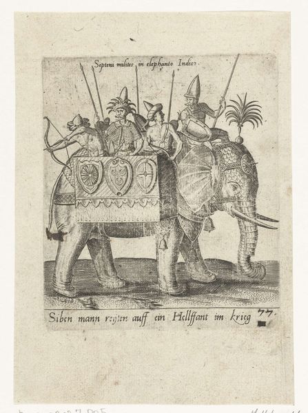 Curator: This is Hans Burgkmair's, The Austrian Territories, and my first reaction is that it possesses a unique balance of formality and intricacy. Editor: I agree. The fine lines creating the textures of the horses' manes and the heraldic banners suggests a mastery of the printmaking process. What was the social function of a piece like this? Curator: It likely served as a form of political promotion. These banners proudly display the heraldry of the Austrian territories, signaling power. It's crucial to remember the role of printmaking in disseminating such imagery across social strata. Editor: Absolutely. The replication process itself speaks to the burgeoning market of images, and their role in shaping public perception and defining these territories' identity. Curator: Reflecting on Burgkmair’s work, I’m struck by his deft manipulation of materials to capture both the grandeur and the granular details of power. Editor: And considering the historical context, it is clear that the circulation of this image solidified the Austrian territories' presence in the collective imagination.