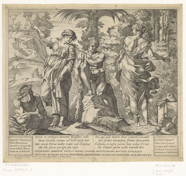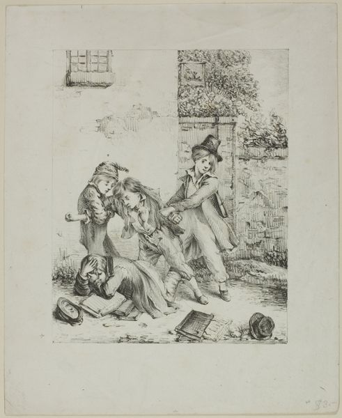 Johann Georg Wille created this print, "Undressed soldier being carried away by four other soldiers," in 1785. It invites us to consider the socio-political context of military life in 18th-century Europe. Wille uses visual codes to convey the vulnerability and dehumanization that can occur within military structures. We see the undressed soldier, stripped of his uniform, a symbol of his identity and status. The cultural references to classical depictions of fallen heroes are subverted; this is not a glorious death but a stark portrayal of war's physical and psychological toll. The image may be commenting on the social structures of its time. Understanding this work benefits from researching military history, social hierarchies, and the role of art in critiquing power. The meaning of art is contingent on social and institutional context.