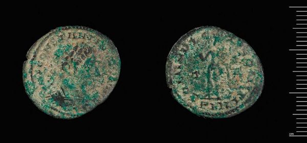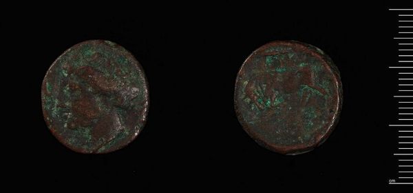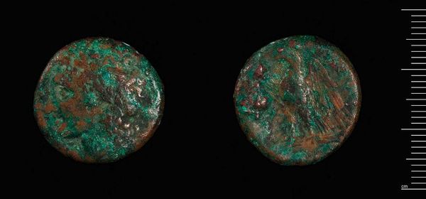 Editor: Here we have a coin of uncertain Spanish origin by Praefectus Cn Statius Libo. What strikes me is the interplay between the clear imagery and the worn surface. What symbols do you see in this piece? Curator: The coin carries a layered symbolic weight. Notice the presumed portrait on one side; portraits on coins often represented power, legitimacy. The other side depicts a cornucopia, symbolising abundance, prosperity. These symbols speak to the aspirations of the society that produced them. Editor: So, the images were intended to evoke a cultural memory of wealth and power? Curator: Precisely! Images like these, though small, were powerful tools in shaping perceptions. Their repetition reinforced cultural values. Editor: I never thought about coins as cultural artifacts before. Curator: Every image carries memory; the deeper you look, the more it reveals.