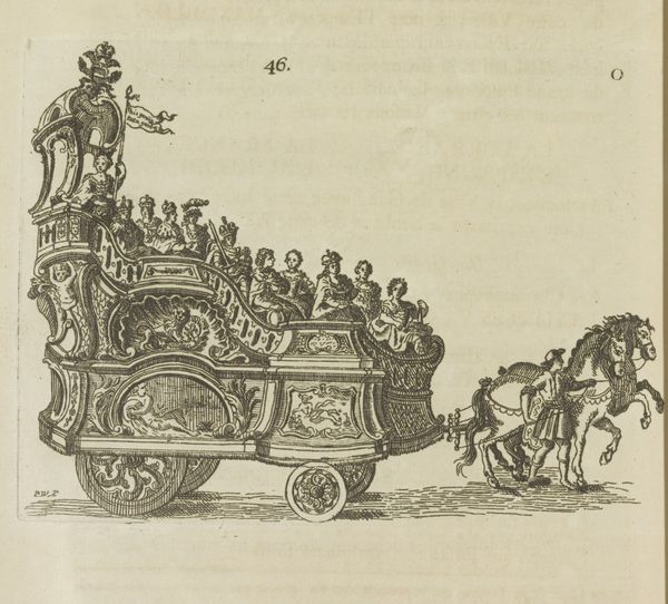 Crispijn van de Passe II created this engraving, "Overspelende echtelieden op een wagen," which translates to "Adulterous couples on a wagon," during the Dutch Golden Age, a period marked by significant social and cultural shifts. The print offers a glimpse into the era’s attitudes toward morality and gender roles. Adultery, particularly by women, was not just a personal failing but a public matter with legal and social repercussions. The shaming wagon, driven by a Pan-like figure, underscores the public humiliation inflicted on those deemed to have transgressed marital vows. The varied reactions of the figures on the wagon—from shame to defiance—suggest complex emotions tied to the lived experience of gender and societal expectations. The imagery challenges us to consider how early modern European society negotiated issues of morality, public shame, and the precarious position of women within marriage. It reminds us of the emotional and social lives intertwined with historical norms.