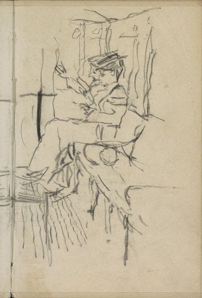 Curator: Let's take a look at this drawing by Jan Willem van Borselen titled, "Two Children Sitting on the Grass by a Fence." It was likely made between 1868 and 1887 and is rendered in pencil on paper. You can find it here at the Rijksmuseum. Editor: It’s charming, almost fragile. The scene is intimate—the kind of quiet moment you might stumble upon. There’s a melancholic feeling that resonates, like looking into a faded memory. Curator: It's interesting you say that. Van Borselen's choice of pencil as a medium suggests a study, perhaps preparatory work for a larger painting. We have to remember the economics of art production—materials weren't cheap! The use of pencil allowed for accessibility, speed, and revisability. Editor: It definitely feels like a snapshot, a fleeting observation captured swiftly. Look how loosely he sketches the background, versus the more defined shapes of the children’s faces and clothes. I feel their closeness without elaborate details. It speaks volumes about their relationship, maybe siblings or close friends. Curator: Right, and we should note the potential impact of photographic practices. While seemingly traditional in its subject, such work reflected anxieties of painting amidst the rise of accessible photography. Quick sketches could also have provided accurate depictions more cost-effectively to certain demographics. It's a compelling mix of tradition and technological change. Editor: Yes, definitely. There is an honesty and lack of pretense in these children; maybe it's because the sketchy nature makes it feel somehow undone or uncontrived. As a result it transcends simply "representing" children and feels emotionally charged. Curator: And ultimately, isn't it compelling how a humble drawing can generate so many complex questions about material accessibility and art history even today? Editor: Indeed. It really highlights the tension between technique, material reality, and its capacity to elicit such potent and tender feelings.