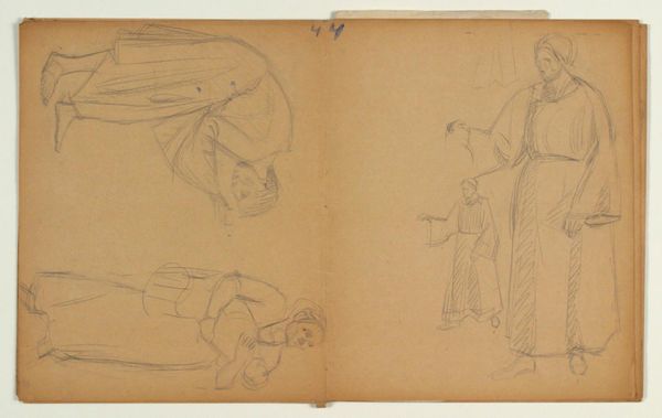 Curator: Let's take a look at "Dyreskitser," or "Animal Sketches," by Niels Larsen Stevns, likely created between 1900 and 1905. Editor: My immediate impression is one of intimacy, Curator. The light pencil strokes against the aged paper evoke a quiet moment, almost a secret glimpse into the artist's private study. Curator: These were a part of studies he would perform for larger painting commissions or for lithographs in books of popular myths and legends. The early 20th Century, Denmark was finding itself in this period. He needed preliminary studies of animals. Note how each one has its weight on its belly resting. This reflects how animals had weight in larger national cultural concepts as well. Editor: Indeed. Stevns really captures their corporeal nature here. Notice how the artist uses the pencil to create shading and mass. The formal elements work beautifully in tandem. The curve of its spine... It is at ease. Do you agree that this realism also lends an emotive power? Curator: Precisely, because the artwork served in the political purposes to the State and in book illustrations, artists had to train to depict things, especially animals, realistically to make propaganda most potent. This way it was accessible to the people as he also was working through realism. Editor: To step back for a moment, Curator, even as "sketches", this captures the truth and essence of the animal’s weight, as well. Curator: Certainly, one of Stevns' accomplishments with this particular study, in relation to other studies, is his integration of nature studies with social, and political aims through visual imagery. Editor: Yes, from a formalist standpoint, his mastery in portraying these is evident and quite fascinating! The lines speak for themselves. Curator: His sketches served a purpose and were integral to state efforts and nation building. This art exists because the state requires it. Editor: Beautiful. I will never view “Dyreskitser” in quite the same way after hearing your contextual insights, Curator! Curator: And likewise. Your perspective has enabled me to see these from the view point of artistic mastery instead of social function alone.