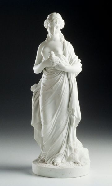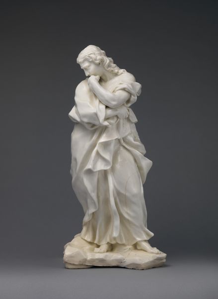 This is a porcelain ‘Allegory of Spring’ figurine, made at the Weesper factory in the Netherlands. During the 18th century, porcelain was often used to create allegorical figures representing abstract concepts like the seasons. This piece connects with a rich tradition of representing the seasons through feminine figures. How does this figurine speak to the cultural values of its time? The woman, draped in flowing fabric, may be Flora, the Roman goddess of spring, she is depicted with a classical aesthetic, echoing ancient sculpture. A putto or cherubic figure stands beside her, carrying a basket brimming with flowers. Note the whiteness of the porcelain, suggesting purity and innocence. Figurines like this were luxury items, crafted for the wealthy elite. The Weesper factory, like others across Europe, was part of a burgeoning market for decorative arts. By understanding the social context of porcelain production, we can understand the historical status of art, its relationship to class, and the culture it represented. Researching factory records, personal letters and probate inventories would reveal more.